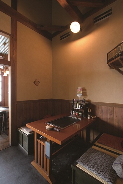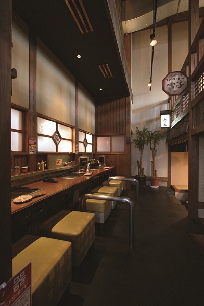 まもなく見えてきますのは、昭和30年代の駅舎をイメージさせる店内でございます。 席数は、なんと計76席!昔 駅の中にあったいろいろなお店を、イメージしたお席となっております。昭和30年代の活気あり、あたたかみあり、懐かしさありの店内で、鉄板を囲んでみんなでワイワイ、昔へのタイムスリップの旅を、楽しんでください。